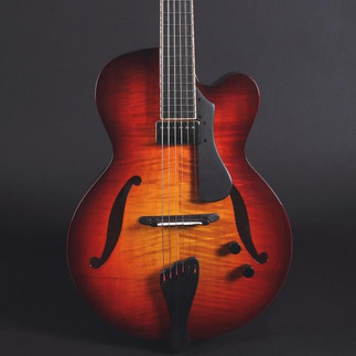 Here you go, some pictures of a carved top Californian finished in sienna nitro and fitted with a Jon Dickinson floating PAF. This one is ready for immediate dispatch from Mak's Guitars in London: https://www.maksguitars.co.uk/collections/archtops-semis/products/fibonacci-californian-sienna-burst