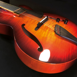 This beautifully proportioned archtop, has a body size of 375mm (14.76”) x 63mm (2.48")deep , consisting of a premium, seasoned 35mm, AAA select flame maple sound-board, 3-ply laminated maple back & sides, and a maple neck.